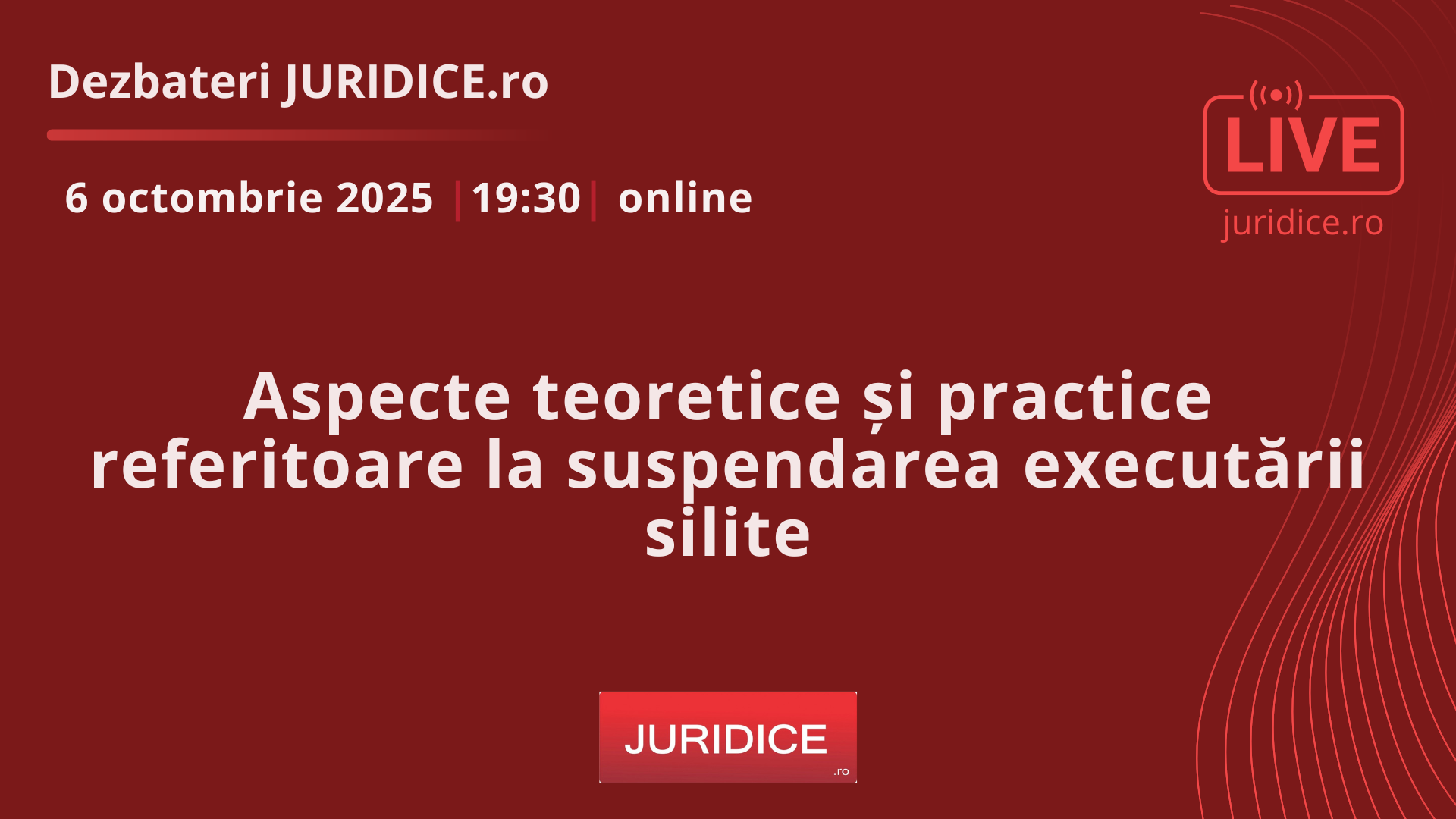 Aspecte teoretice și practice referitoare la suspendarea executării silite / 6 octombrie 2025 (ediția 705)